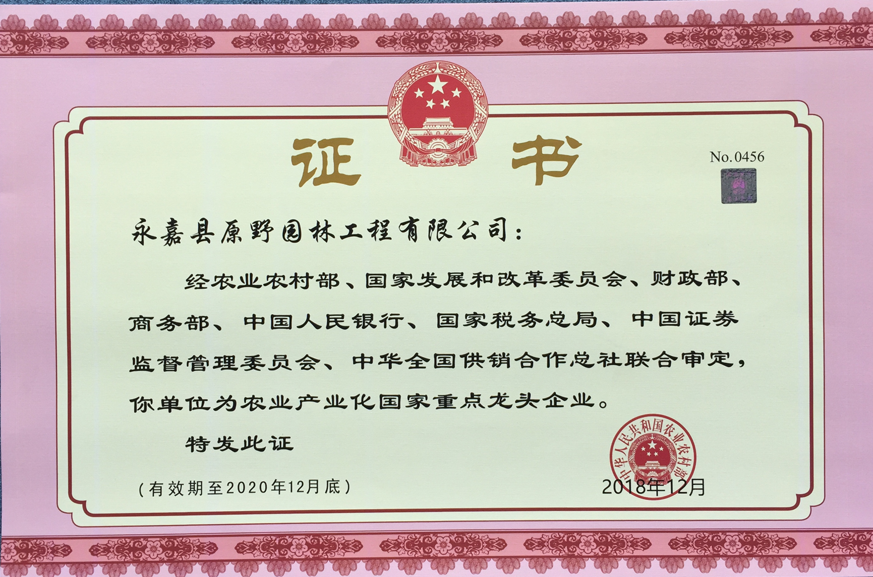 - 2018年12月,評為為農(nóng)業(yè)產(chǎn)業(yè)化國家重點(diǎn)龍頭企業(yè)