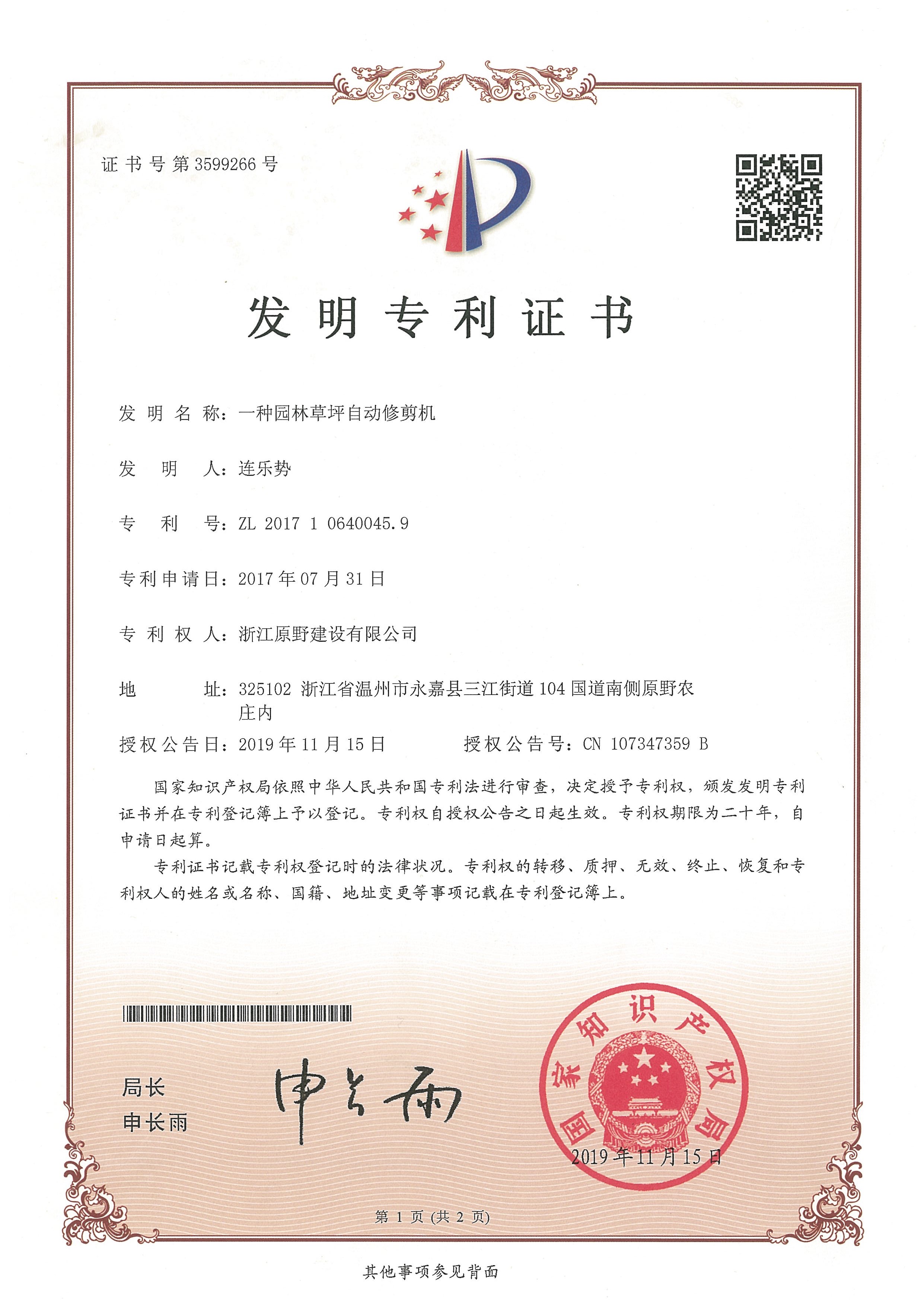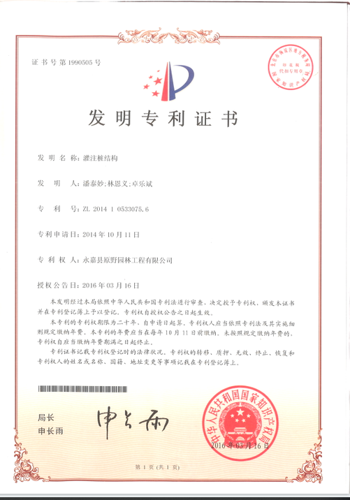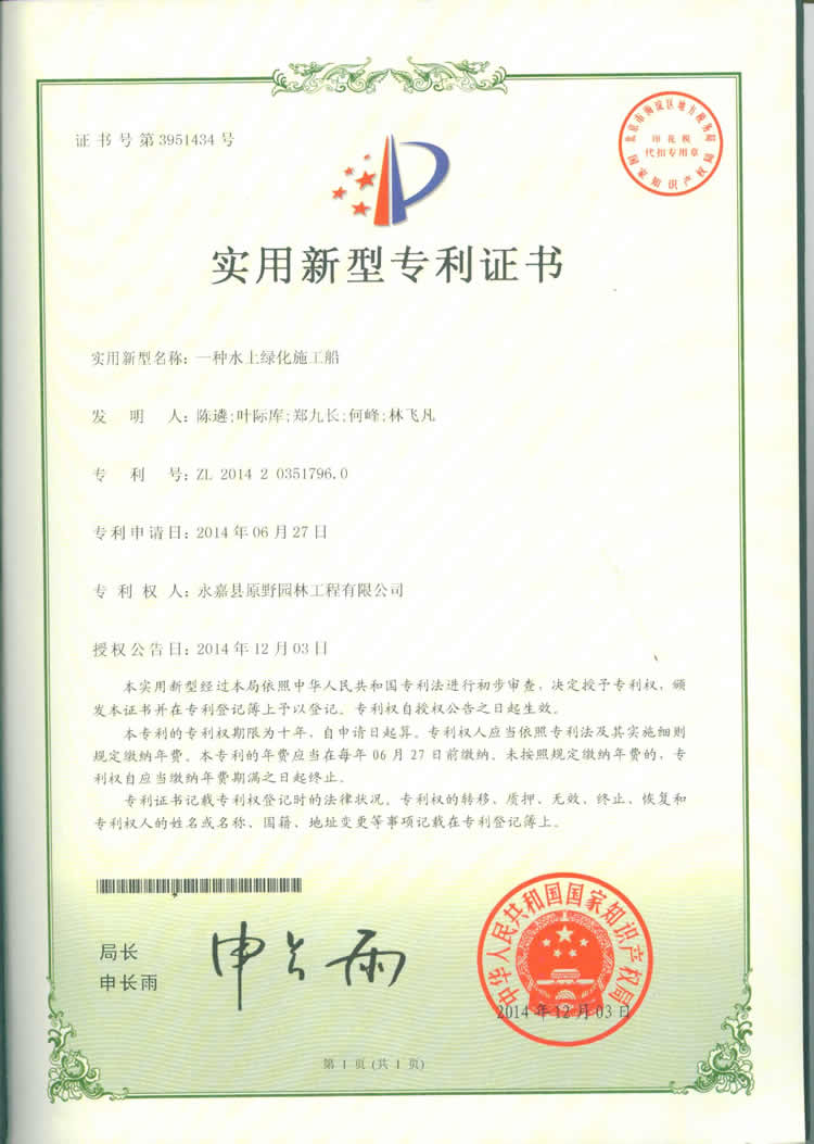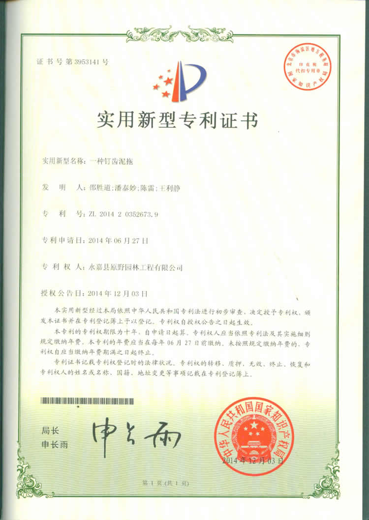 一種移植斷根鏟(專(zhuān)利證書(shū))