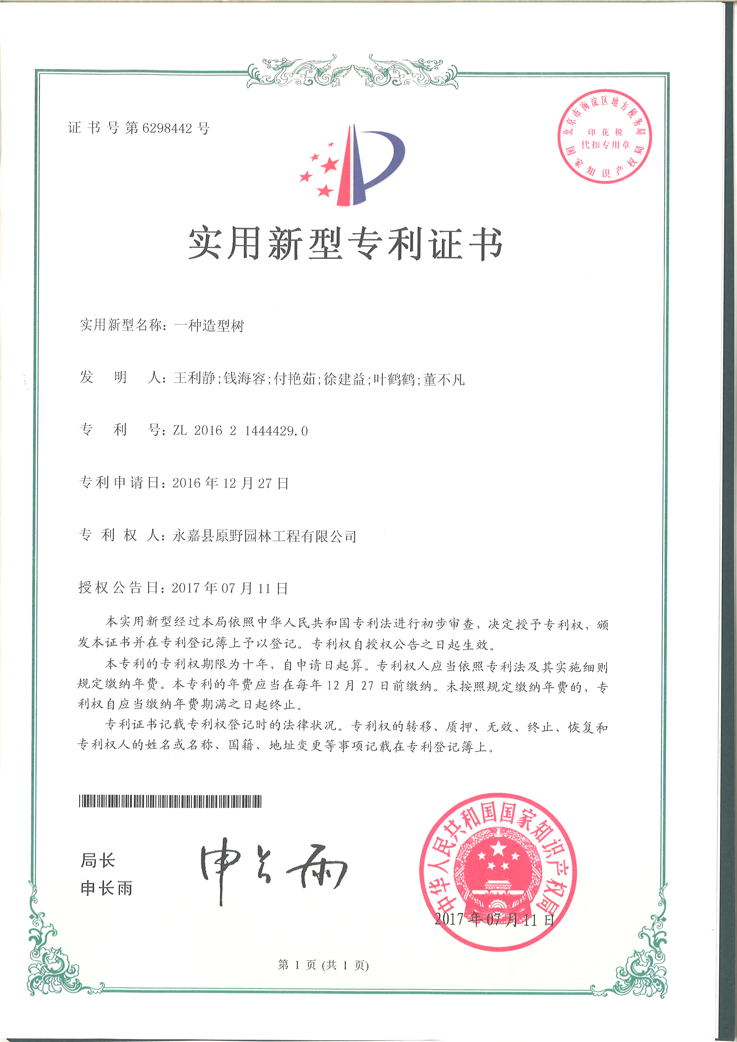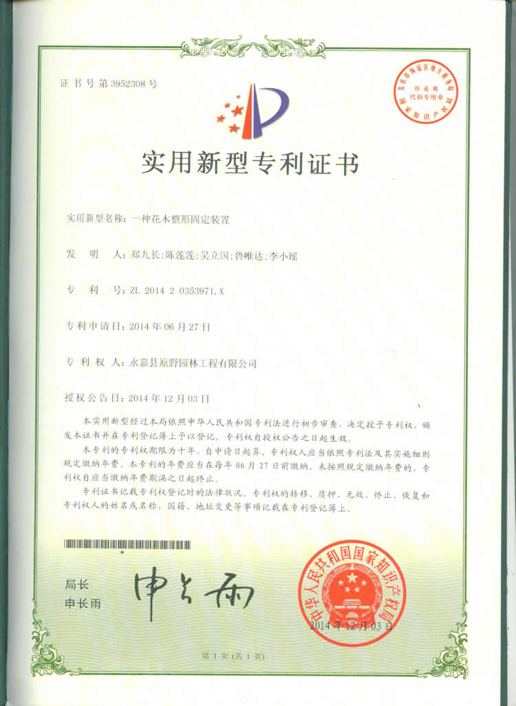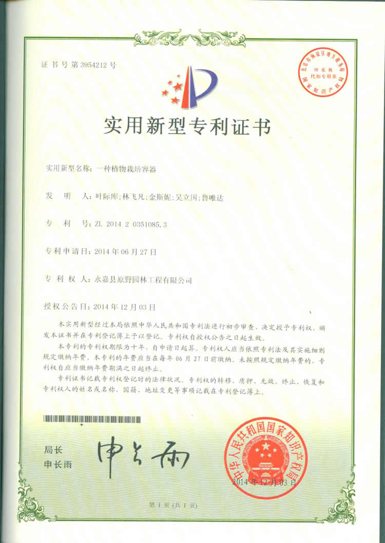 一種植物栽培容器(專(zhuān)利證書(shū))