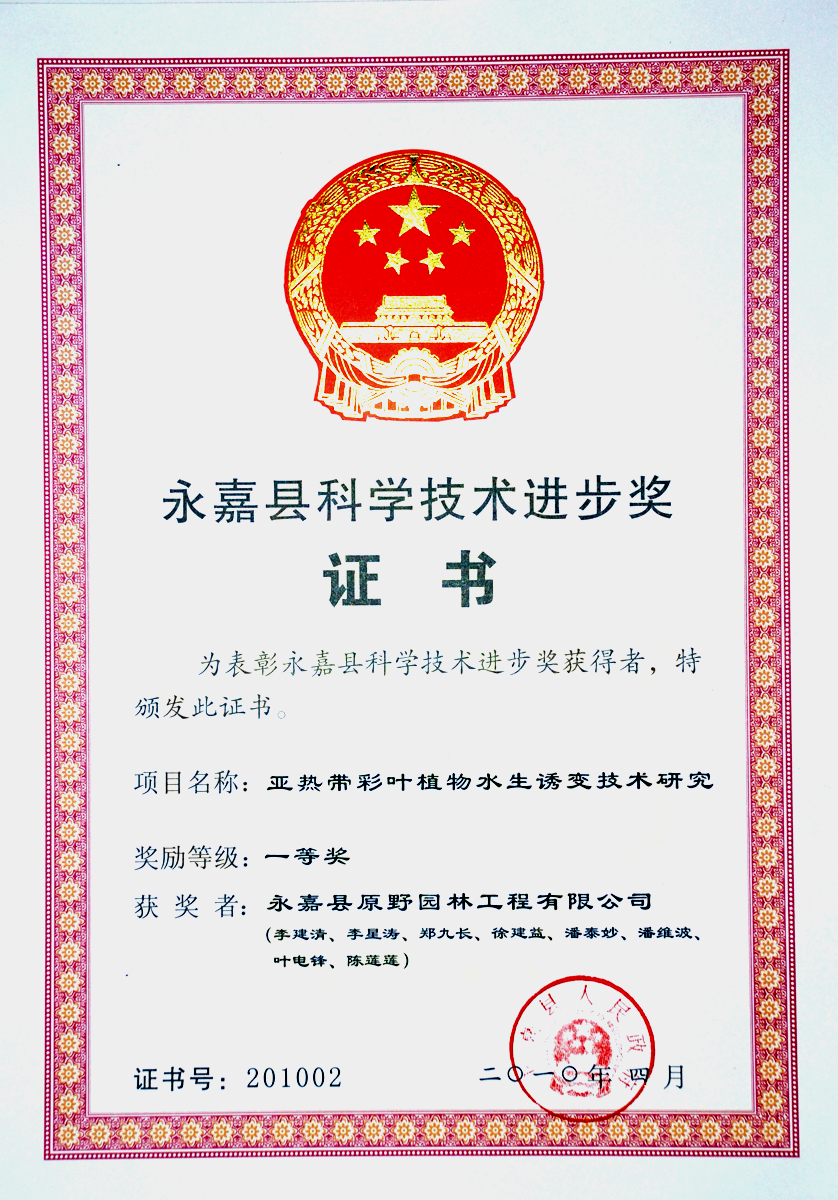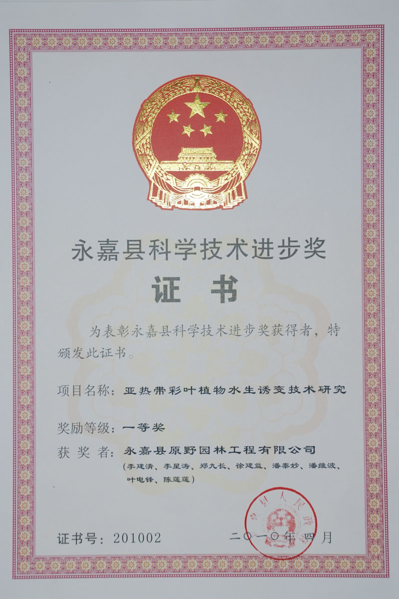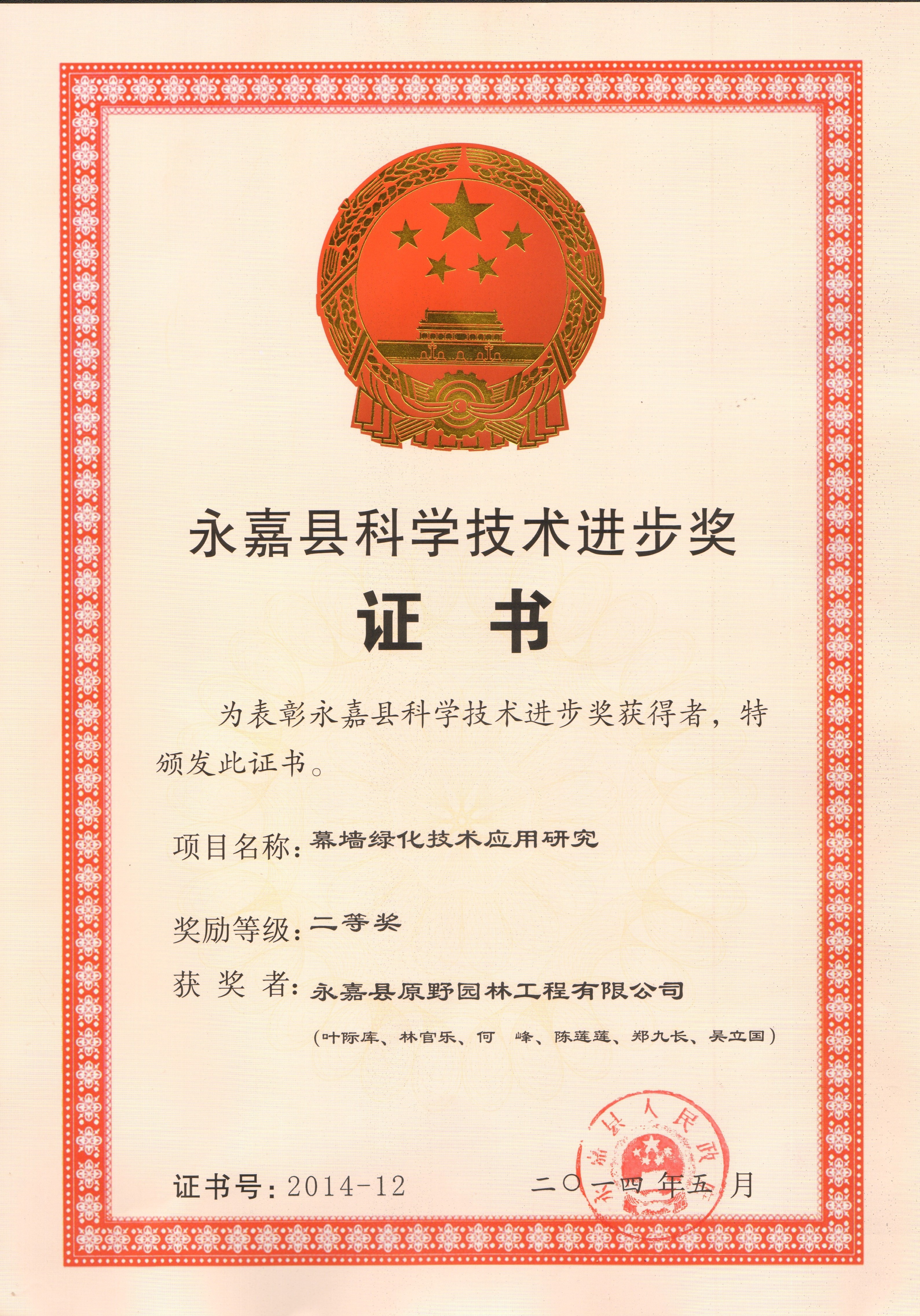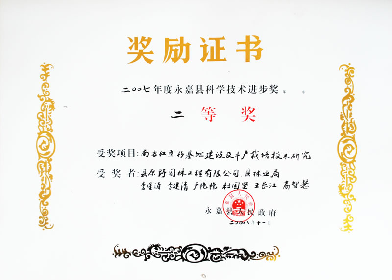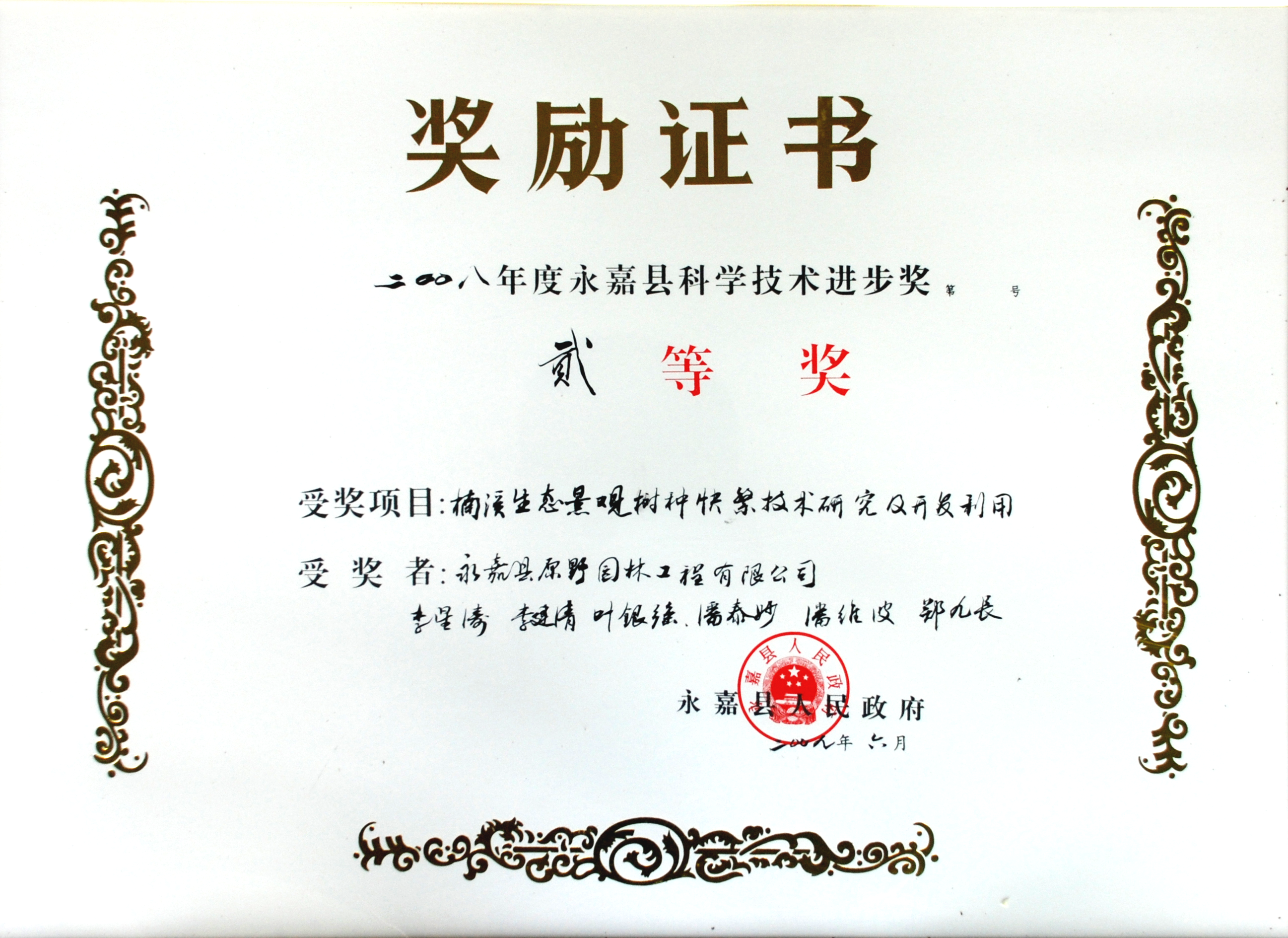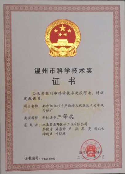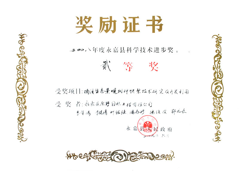 永嘉縣科學(xué)技術(shù)進(jìn)步二等獎(jiǎng)