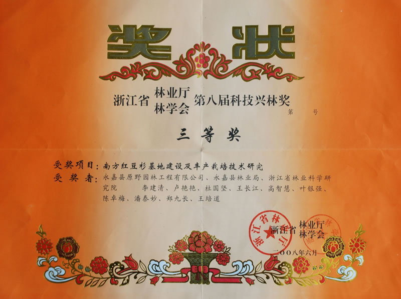 浙江省林業(yè)廳林學(xué)會(huì)第八屆科技興林獎(jiǎng)三等獎(jiǎng)