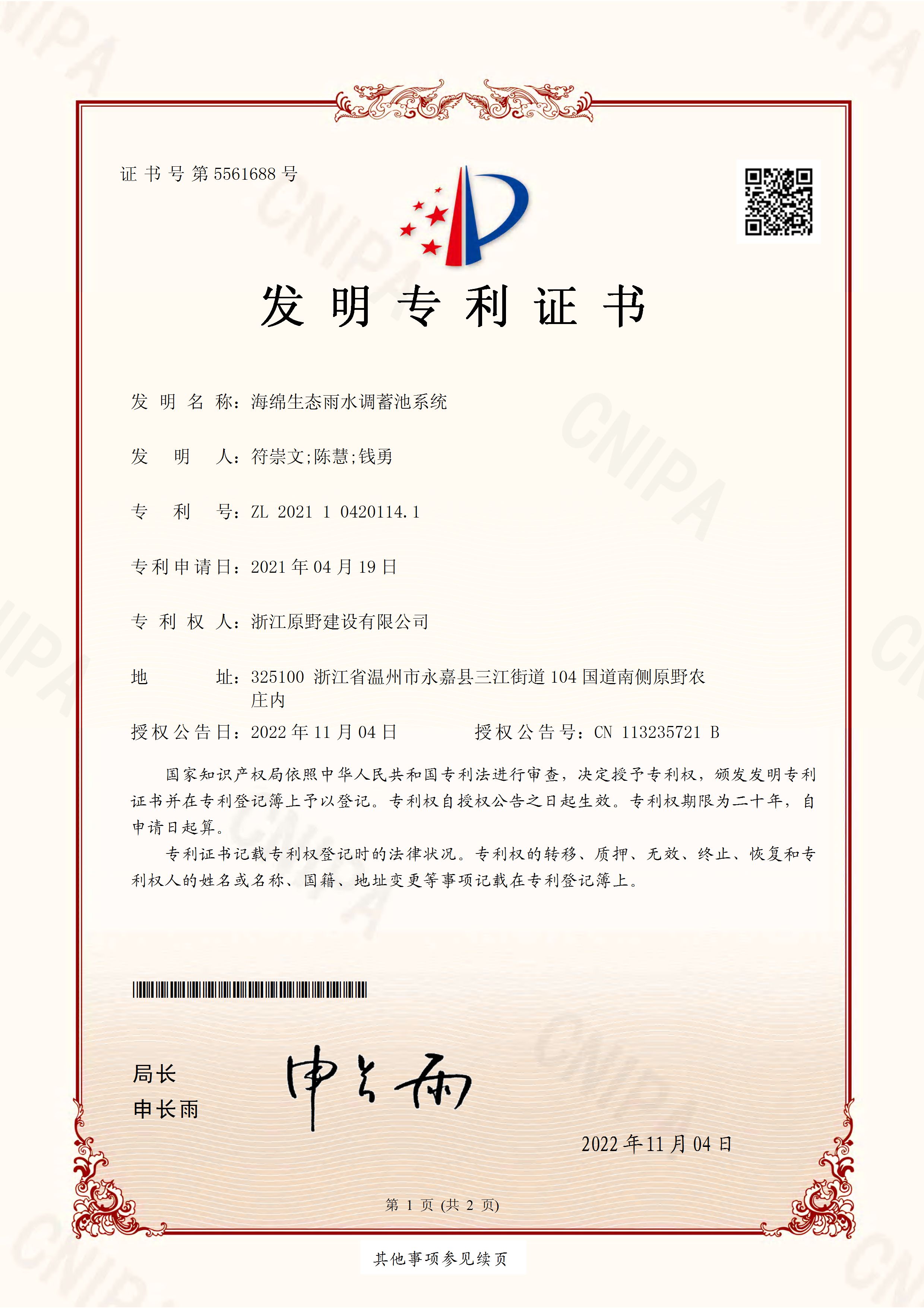 一種橋下雨水收集噴灌植物系統(tǒng)(專(zhuān)利證書(shū))