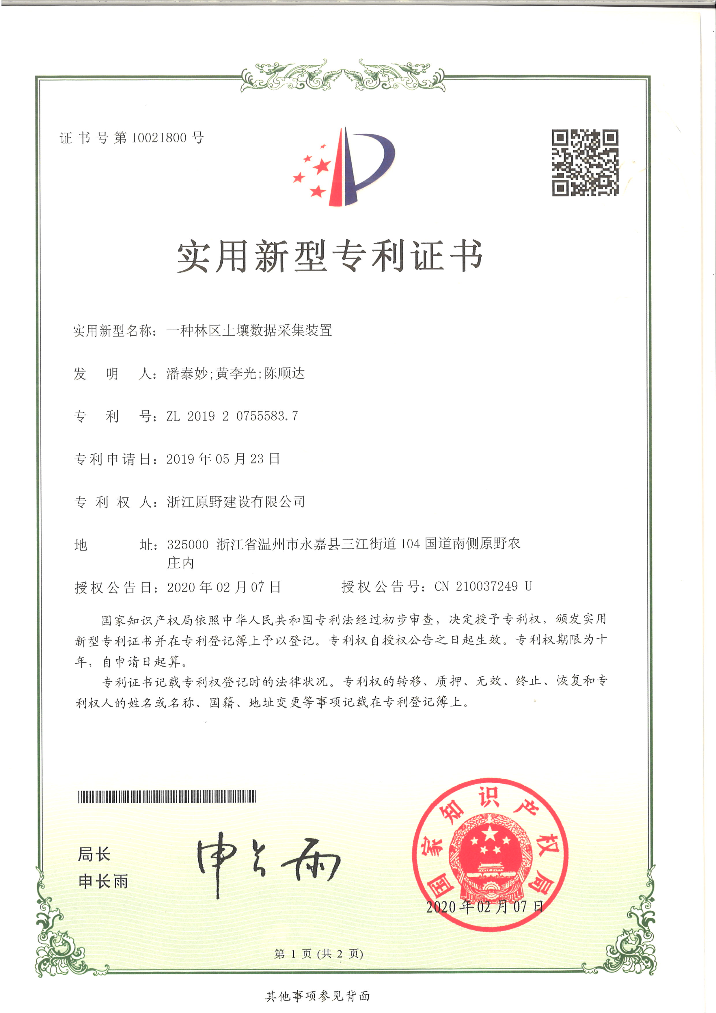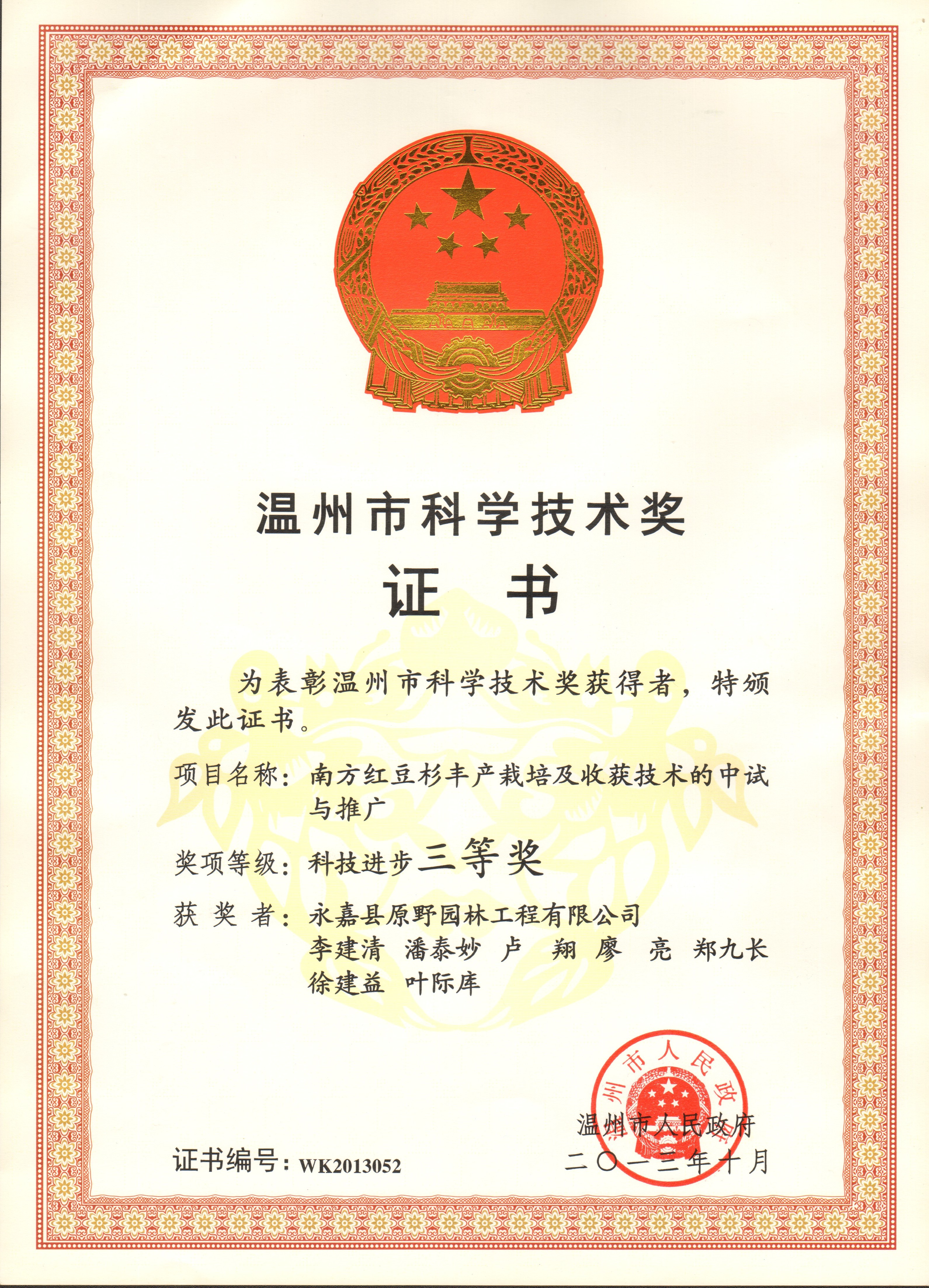 永嘉縣科技進(jìn)步一等獎(jiǎng)