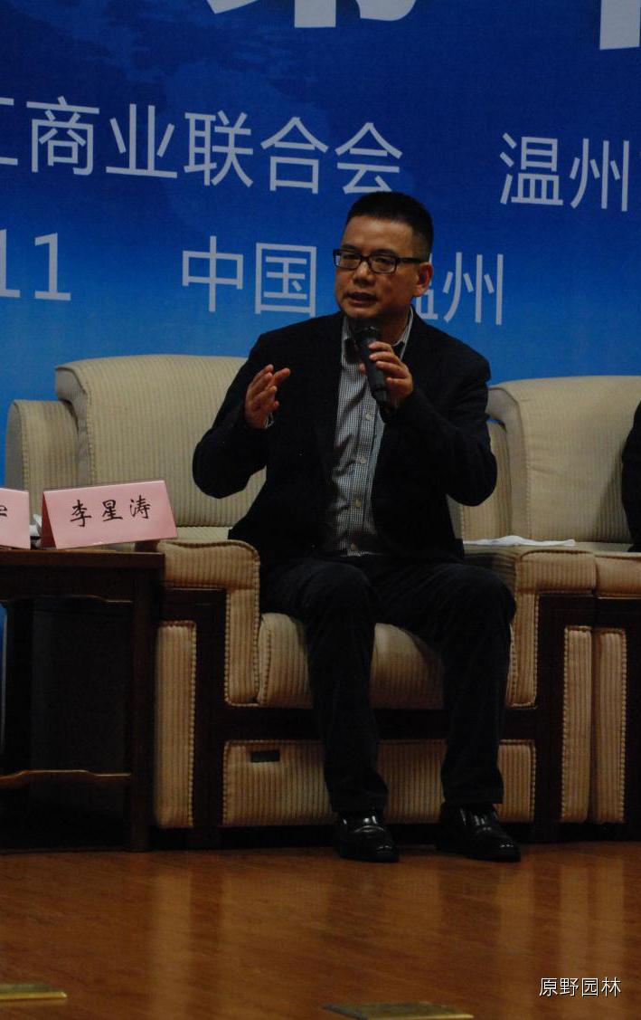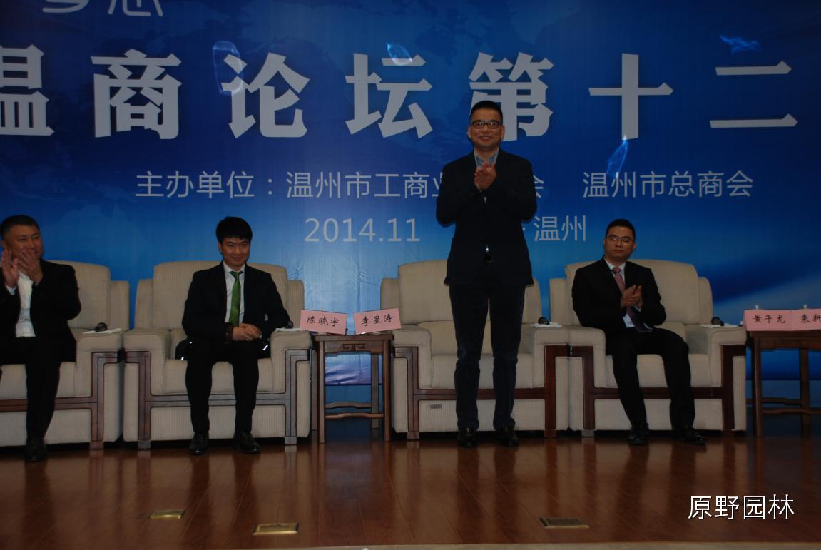 作為上臺交流的嘉賓永嘉縣原野園林工程有限公司董事長李星濤(左四),借用名人名言回答什么是責(zé)任:“松下幸之助講過一句話,企業(yè)的發(fā)展和存在的價(jià)值,就是為社會增加福祉。