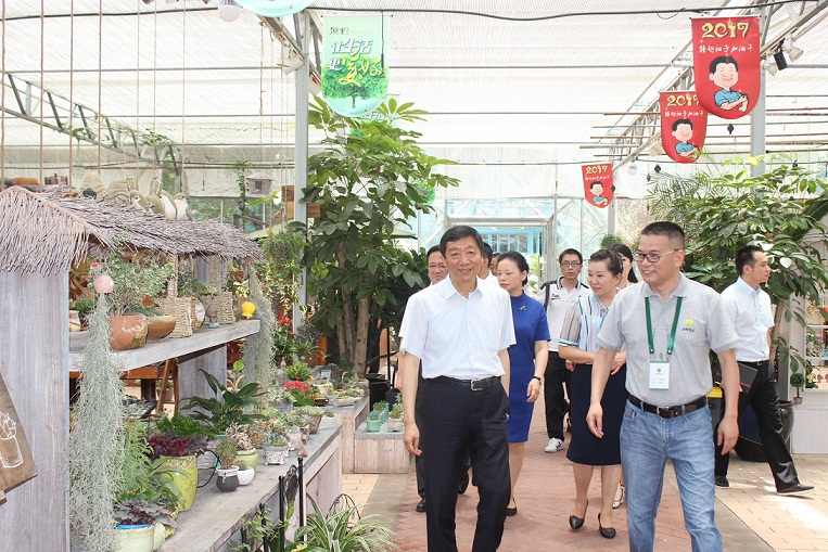 李星濤董事長于原野農(nóng)莊接待了姚司令一行,在李星濤董事長的陪同下,考察團先后參觀了梅園、羅漢松園、紅楠嶺、黃花梨林、水培植物棚、大型會議室、鐵皮石斛棚以及園藝家花卉超市等處,現(xiàn)場考察了農(nóng)莊的各項工作,了解農(nóng)莊現(xiàn)況以及未來規(guī)劃情況——原野響應(yīng)政府生態(tài)農(nóng)業(yè)的號召,借由農(nóng)莊靠近市區(qū)的地理優(yōu)勢,將其從一個單純的苗圃產(chǎn)業(yè)園,整合成為農(nóng)業(yè)公園式的農(nóng)莊……