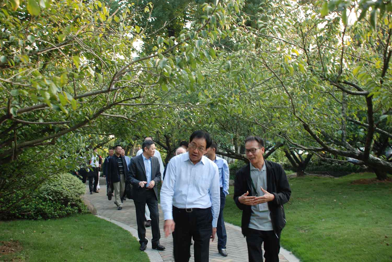 當(dāng)天下午,孫文友一行走進(jìn)原野農(nóng)莊,眼前豁然開朗,各種樹木匯成了一片綠海。艷麗奪目的花草,碧綠的樹木,猶如步入了一個(gè)綠色的世界。調(diào)研組一行參觀了農(nóng)莊內(nèi)的梅園、羅漢松林、婚慶草坪、特色民宿、鐵皮石斛棚、園藝家超市等場所。調(diào)研組一路走、一路看,一邊詢問原野農(nóng)莊經(jīng)營方面的情況。