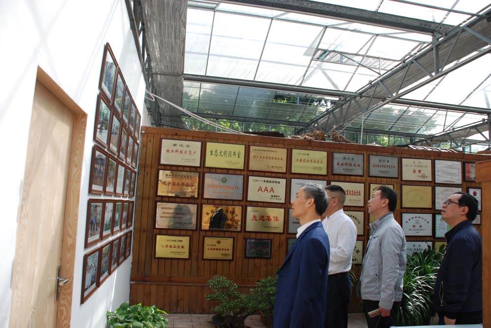 殷志軍一行在原野農(nóng)業(yè)集團(tuán)董事長(zhǎng)李星濤的陪同下,沿著農(nóng)莊梅園步行到羅漢松園、黃花梨林等珍貴樹(shù)種的種植區(qū),并參觀了新建特色民宿,鐵皮石斛棚種植區(qū)、園藝家花卉超市。