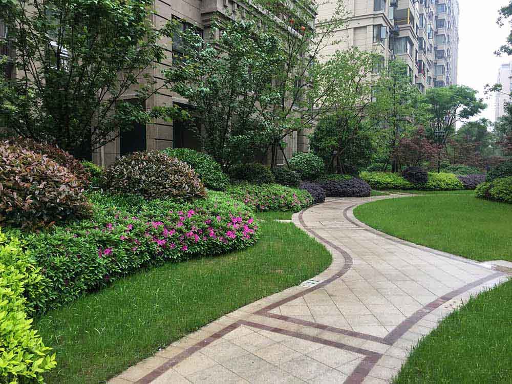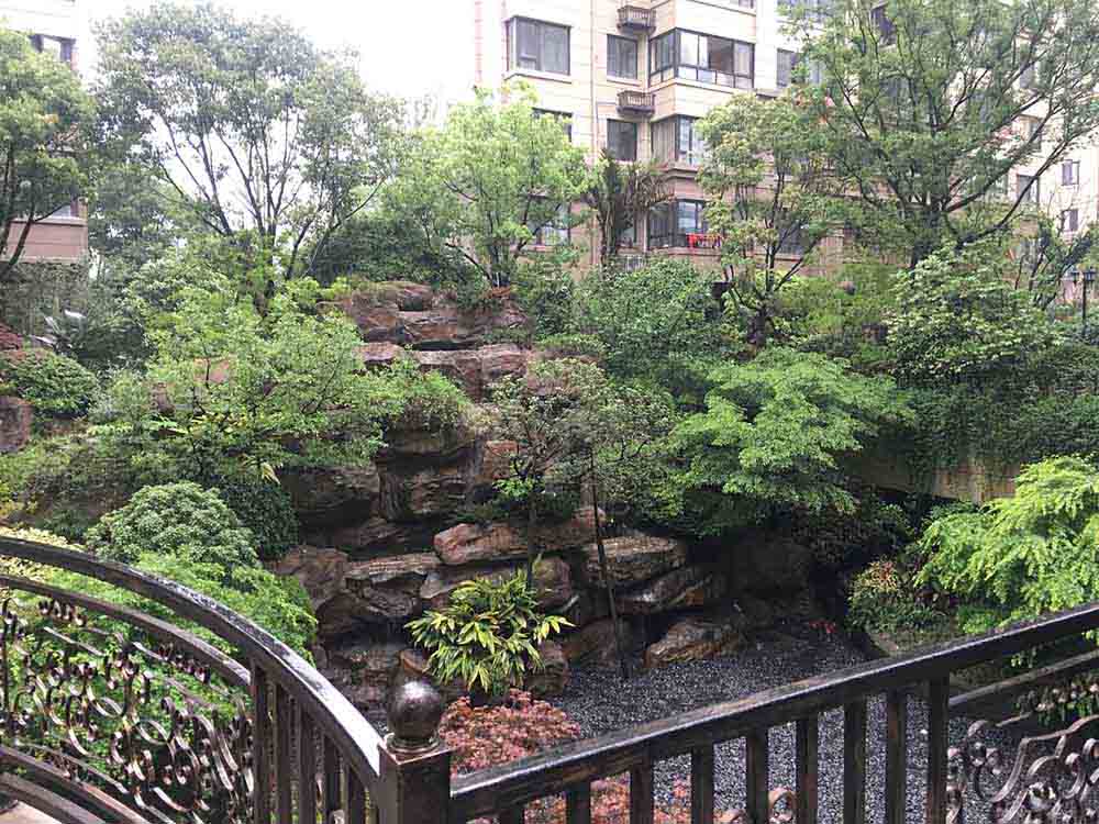 原野建設(shè)打造的龍灣C-14地塊景觀綠化工程,位于永寧西路北側(cè)、緊靠著越秀中學,綠化面積6076.35平方米小區(qū)建筑屬超高層,人走進去會給人很重的壓抑感,建筑外立面米黃色,屬淡色調(diào),再加上綠化設(shè)計要求品種多樣,季相變化豐富,特別是商業(yè)街花壇以及塑石假山瀑布區(qū)的植物,花壇里種植的苗木要求高度、干徑、分叉、冠幅全部一致,通過修剪來達到統(tǒng)一;再者塑石假山瀑布區(qū)的植物,好山好水必定要有好的造型植物來配,所以專門購買了進口紅楓、雞爪槭、樸樹等,再配上本地的中、低層喬木及季節(jié)性灌木及地被植物,使整個小區(qū)一步一景,步移景異,植物季相色彩變化豐富,給人以生活在原生態(tài)大自然中的感覺。