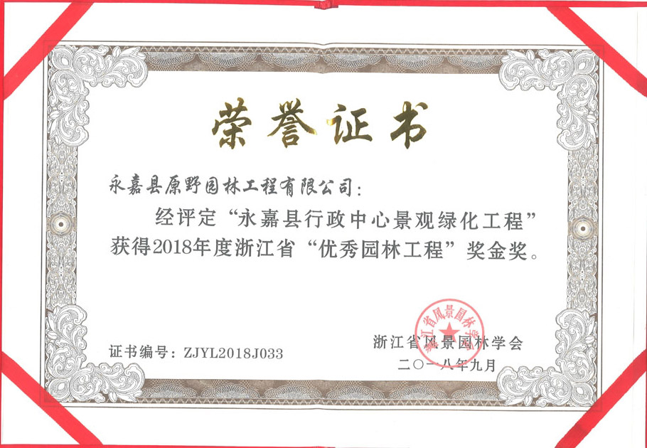 喜報:原野建設(shè)三個景觀項目獲浙江省優(yōu)秀園林工程金獎!