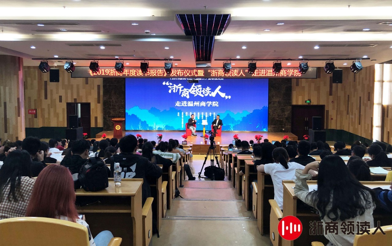 4月23日晚,《2019浙商年度讀書報告》發(fā)布儀式暨“浙商領(lǐng)讀人”走進(jìn)溫州商學(xué)院活動在溫州商學(xué)院學(xué)術(shù)報告廳舉行。省工商聯(lián)副主席元成茂出席并致辭。省工商聯(lián)宣教處副處長李明霞,市工商聯(lián)副主席徐欣隆,市工商聯(lián)副主席、原野農(nóng)業(yè)集團(tuán)董事長李星濤,市工商聯(lián)宣傳處處長蘭青,市工商聯(lián)經(jīng)濟(jì)處副處長張茜,溫州商學(xué)院副校長李益明,溫州商學(xué)院管理學(xué)院執(zhí)行院長張曉梅,溫州商學(xué)院管理學(xué)院黨委書記趙顯洲,溫州商學(xué)院管理學(xué)院副院長潘旭華,溫州商學(xué)院管理學(xué)院黨委副書記胡江,網(wǎng)易傳媒副總編輯章豐,網(wǎng)易浙江總編輯樓晨曉親臨現(xiàn)場。