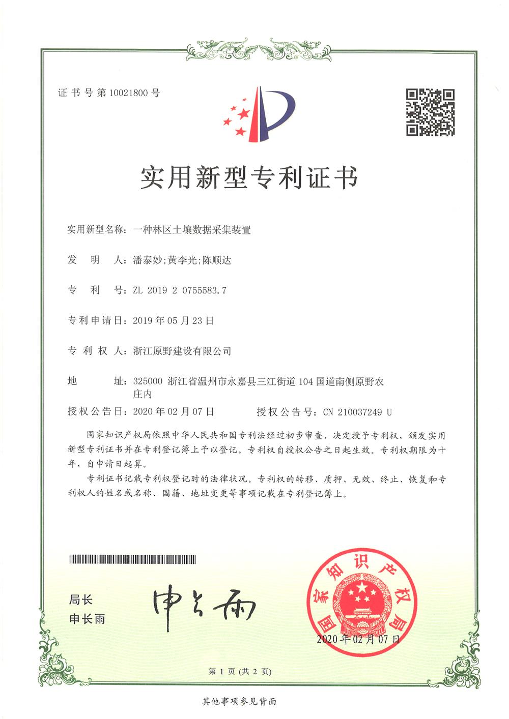 2020-03-21今日,原野集團(tuán)收到實(shí)用新型專利證書(shū)。專利名稱為一種公路邊坡植被恢復(fù)裝置、一種林區(qū)土壤數(shù)據(jù)采集裝置、 一種容器育苗架、一種園林用修剪裝置、一種植物水培育裝置5項(xiàng)專利。