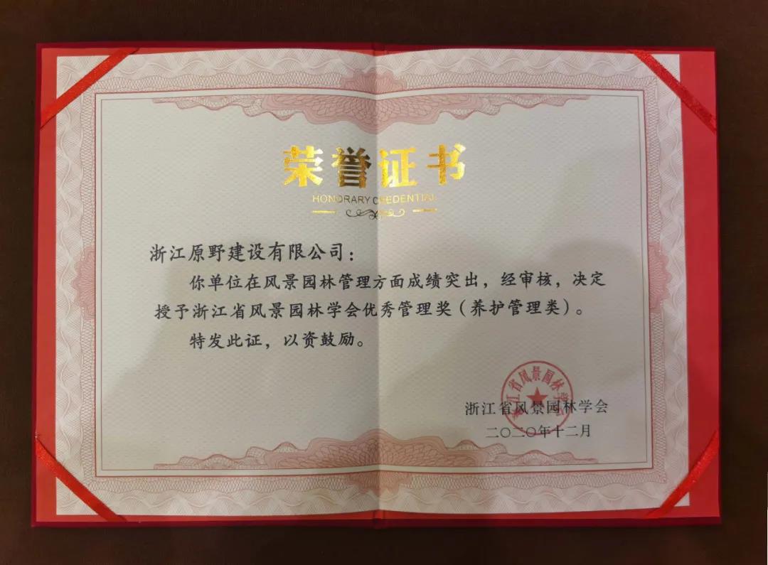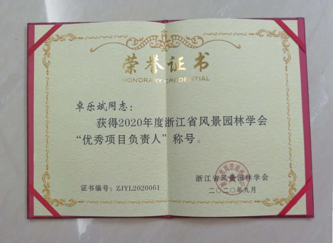 獲浙江省風(fēng)景園林學(xué)會(huì)優(yōu)秀管理獎(jiǎng)(養(yǎng)護(hù)管理類)