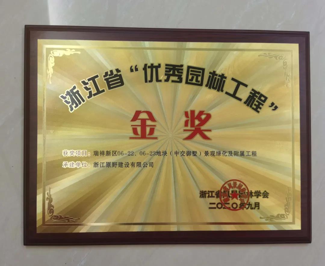 瑞祥新區(qū)06-22、06-23地塊(中交御墅)景觀綠化及附屬工程獲2020年度浙江省“優(yōu)秀園林工程”金獎(jiǎng)