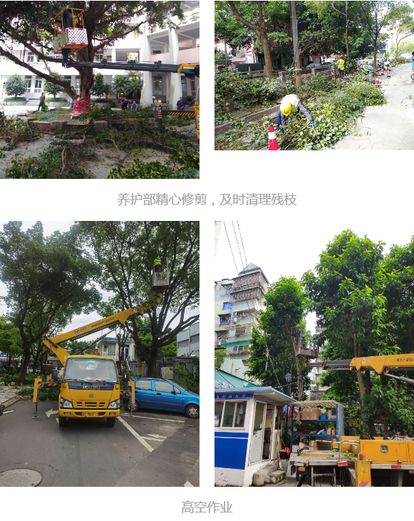 考慮到溫州市是多臺(tái)風(fēng)地區(qū),首先要將消除安全隱患作為本次修剪活動(dòng)的重點(diǎn)。施工隊(duì)對(duì)存在安全隱患的喬木進(jìn)行搶修,通過多作業(yè)面平行推進(jìn),在保證安全作業(yè)、修剪質(zhì)量與居民出行便利的前提下,比原計(jì)劃提前11天完成任務(wù)。展現(xiàn)在居民面前的,是安全、生態(tài)、清爽、干凈、整潔的宜居環(huán)境。