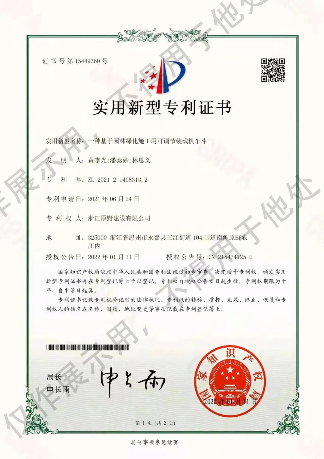 2022-03-212022年第一季度,原野新增兩項(xiàng)實(shí)用新型專(zhuān)利,至此,原野累計(jì)獲得專(zhuān)利增至40項(xiàng)。