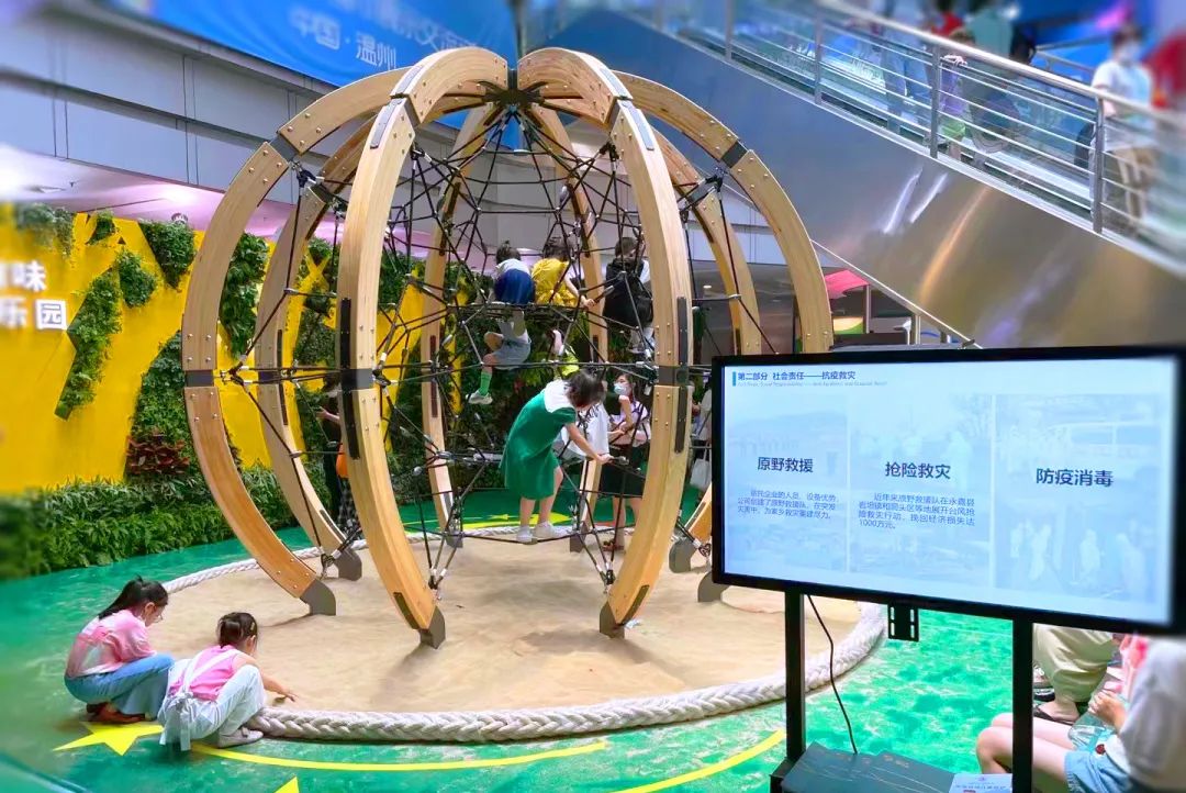 浙江原野建設(shè)有限公司以“童你一起,共建友好城市”為主題,以三垟濕地和白鹿州公園等項目為靈感依托,在現(xiàn)場營造出自然氛圍濃郁、充滿童趣的趣味游樂園。