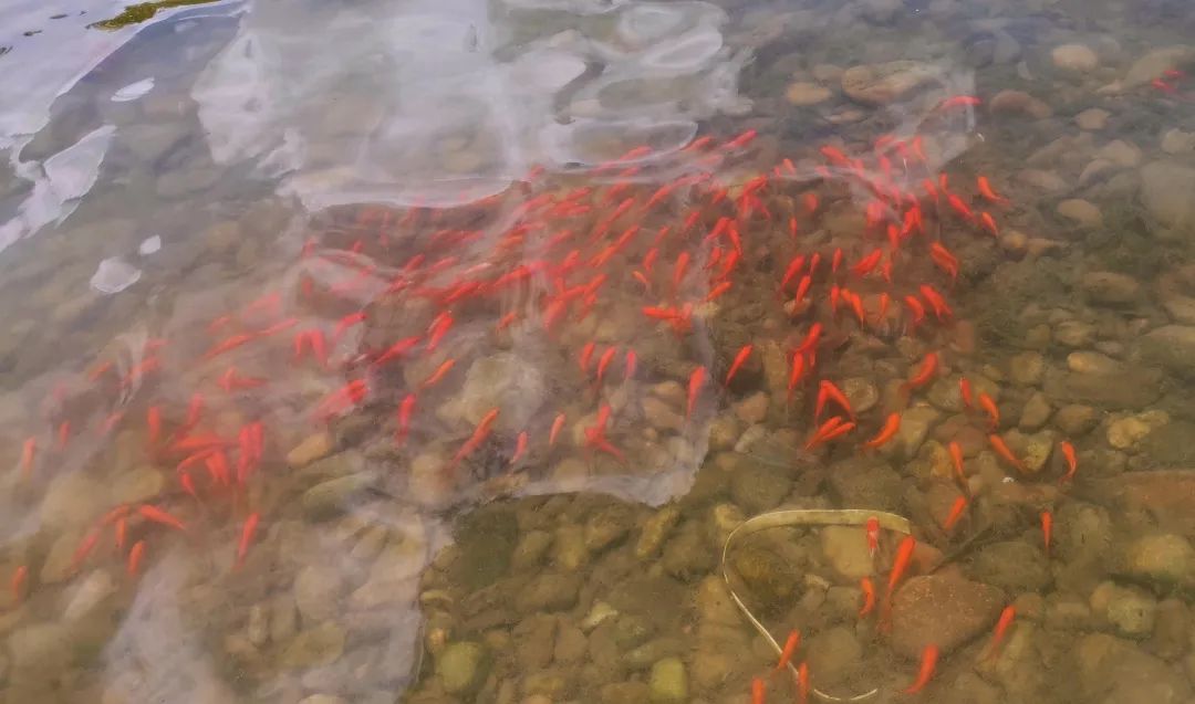 在楠溪江岸邊,一起投放生態(tài)魚(yú)苗