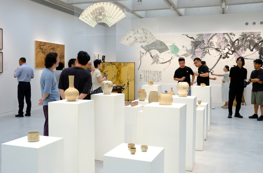 現(xiàn)場展出120件作品,以莊子“虛己以游世,乘物以游心”為精神脈絡(luò),通過“層林盡染—見花織夢—游化一方—虛己遊世”四個板塊,以由遠(yuǎn)及近的觀看邏輯,引導(dǎo)觀眾步入層層深入的心靈旅程,讓哲學(xué)與藝術(shù)融入日常審美。