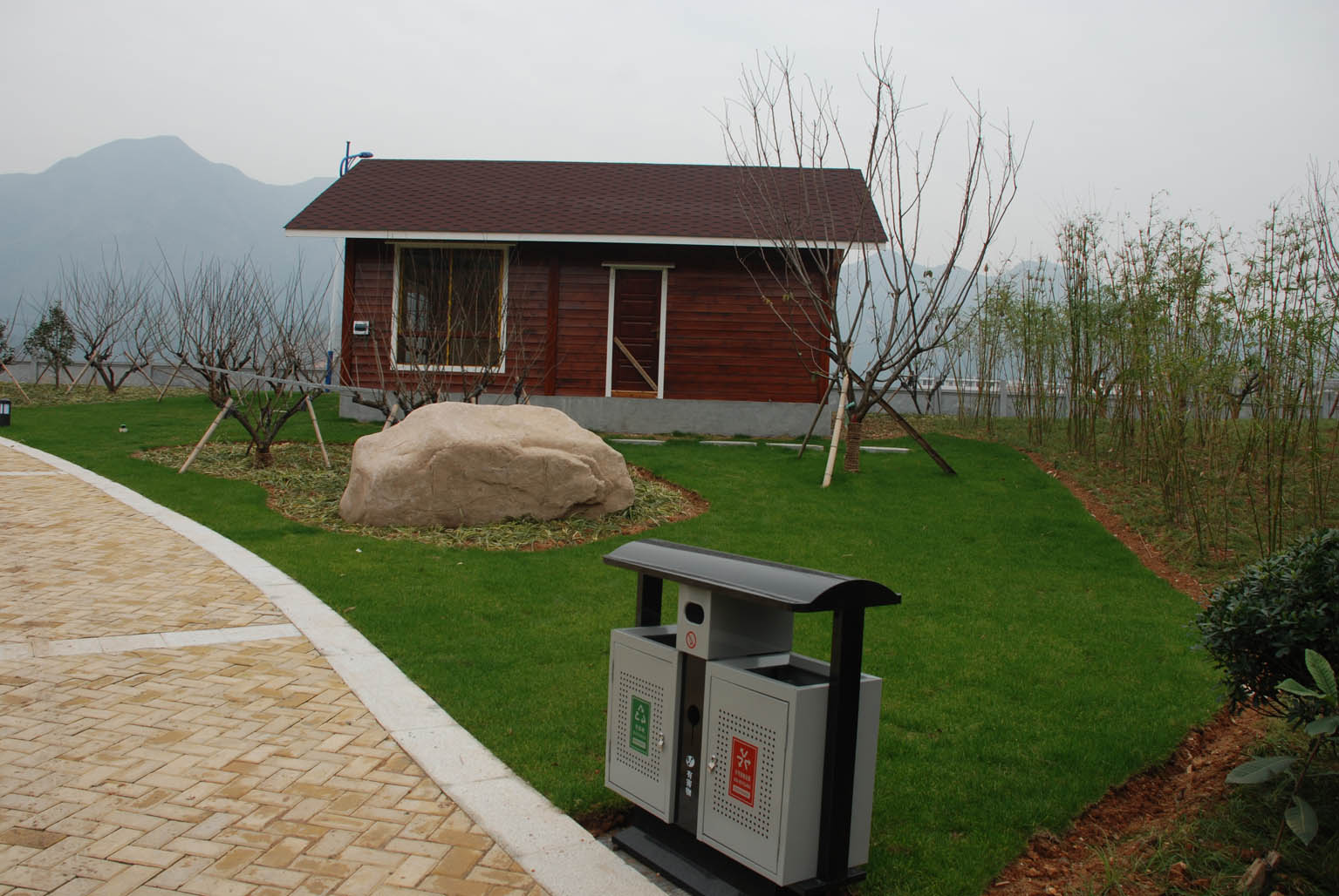 通過景觀雕塑(抽象拉鏈)展現(xiàn)出橋頭鎮(zhèn)當?shù)厝嗣褚宰隼溂~扣為生的歷史文化背景,結(jié)合已有的自然水系采用本地景觀石點綴和水生植物營造出當?shù)氐淖匀患冋婢吧?,還有為人民提供服務的現(xiàn)代式公共廁所和風情小木屋(小賣部和茶室)讓整個公園更貼近生活走進人心,工程還融入了歐式廊架來作為休憩點配合植物造景成功打造了符合溫州人生活的日常習慣的起居環(huán)境,讓當?shù)厝诉h離垃圾環(huán)境,有地可息。