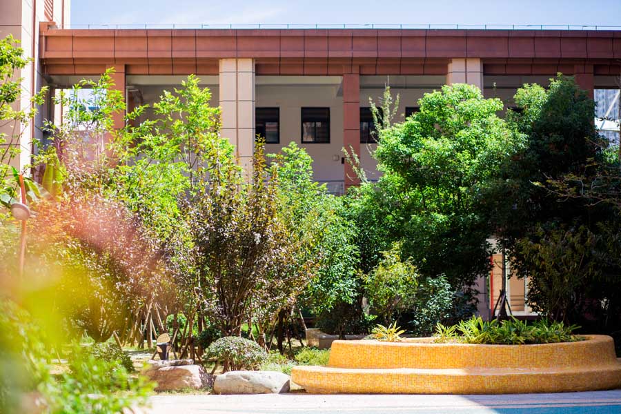 甌海區(qū)外國語學(xué)校一期、二期室外附屬及運(yùn)動場工程,本工程入口兩側(cè)景墻, 是本工程的一大亮點(diǎn),采用花崗巖干掛雕刻,景墻上由潘海波校長書中題字,內(nèi)容為“每一個人都有自己發(fā)展的優(yōu)勢”,告知每個學(xué)子們,每個人都是獨(dú)一無二的,每個人都有自己發(fā)展的優(yōu)勢,學(xué)校的初衷,也是希望每個學(xué)子們都能成為祖國的棟梁。 學(xué)校共分為四大園,每個園都有自己的特點(diǎn),樵園的廊架、膠粘石(樹枝圖),讀園有馬賽克弧形坐凳,耕園整石座凳,漁園的船型座椅、膠粘石(海鷗圖),都各有特色,展示了園林景觀的自然美。 運(yùn)動場標(biāo)準(zhǔn)的400m跑道,設(shè)有籃球架、排球架、足球門、四格肋木、雙杠單杠等,是學(xué)生早操和體育課的場所,也是甌海區(qū)中小學(xué)體育比賽的最佳場地。 植物突出園林景觀特色,以本地樹種為主,適當(dāng)引入園林觀賞性樹種,落葉樹種和常綠樹種自然搭配,高低錯落,灌木與地被的完美配置,充分展現(xiàn)了自然景觀。