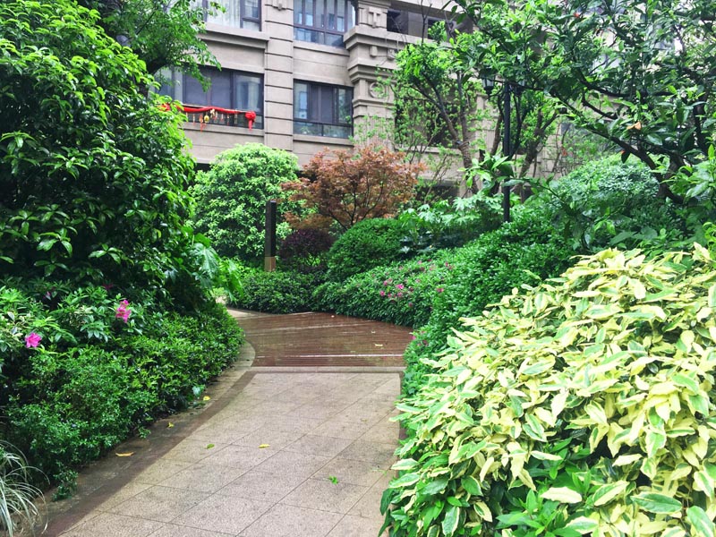 植物的配置上以綠色為主色調(diào),做到四季常綠、三季有花,無論何時(shí)都能看到一片綠色。春季杜鵑花怒放、云南黃馨綻黃;夏季荷花盛開、八仙花開;秋天桂花悠遠(yuǎn)清香……,用植物隨季節(jié)變化的物候現(xiàn)象構(gòu)成環(huán)境的時(shí)間季相變化序列,使人們強(qiáng)烈地感受到四季不同的景色。